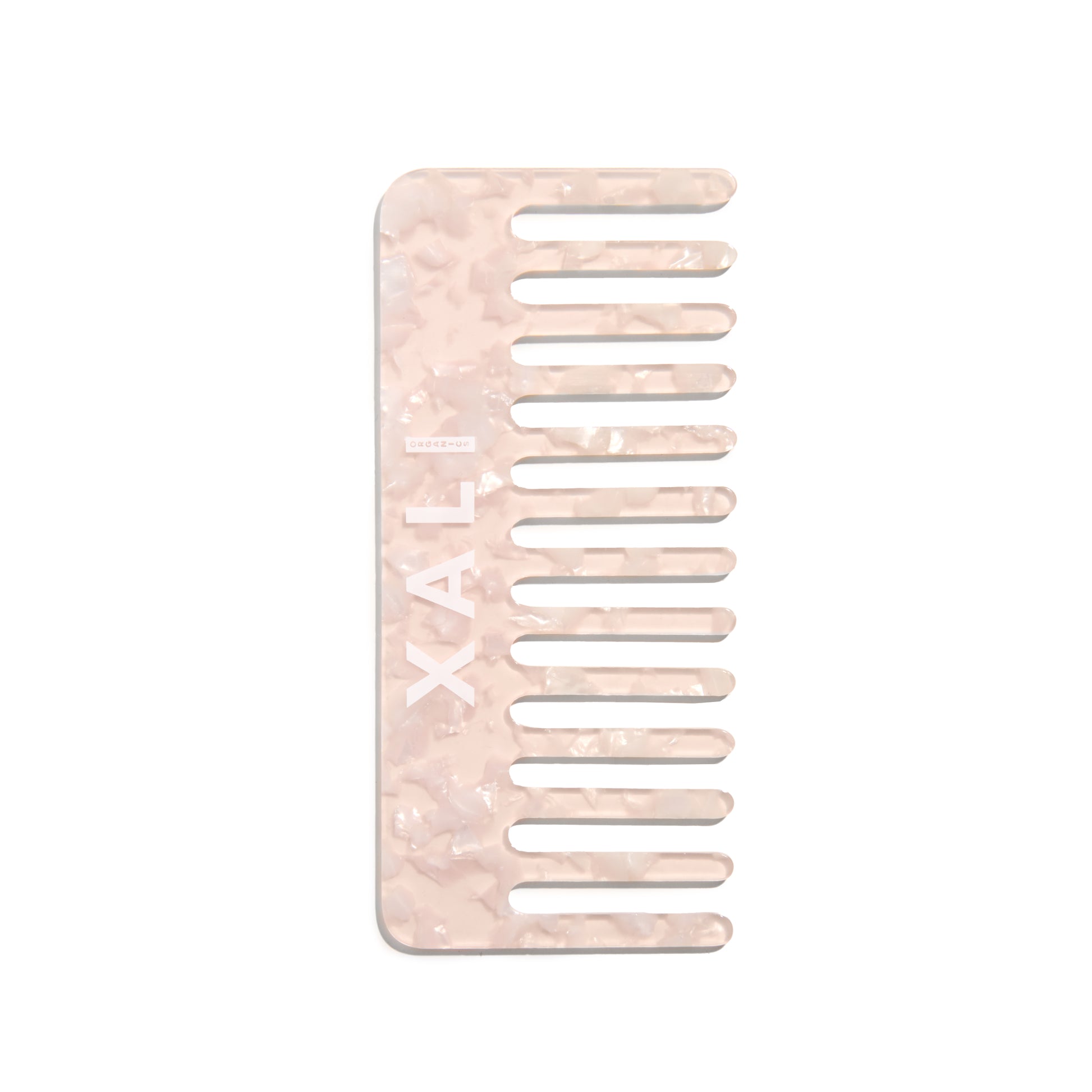 Our Marble hair comb is the perfect addition to your beauty & hair routine. The comb has a wide tooth design, with a tort style pink & white resin.