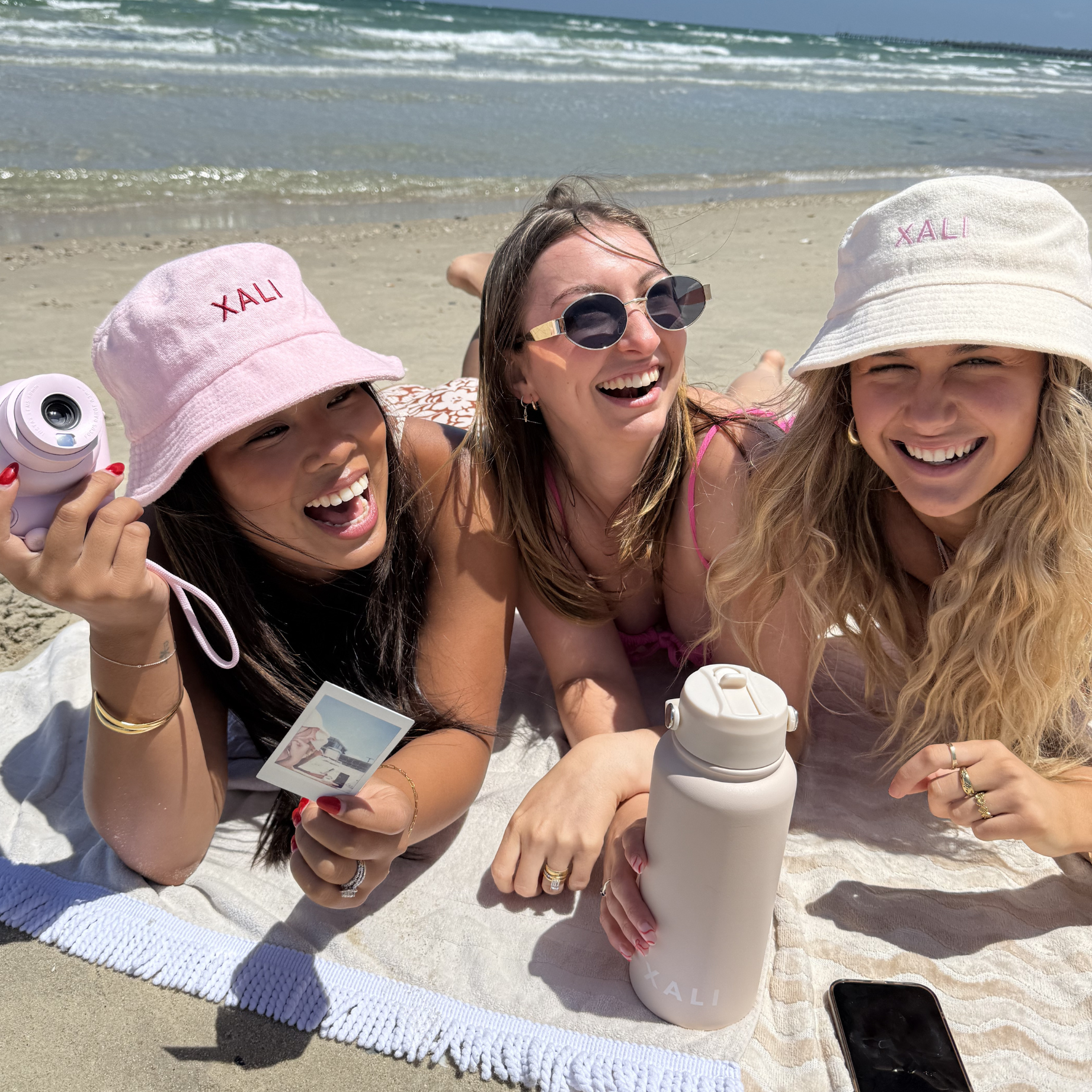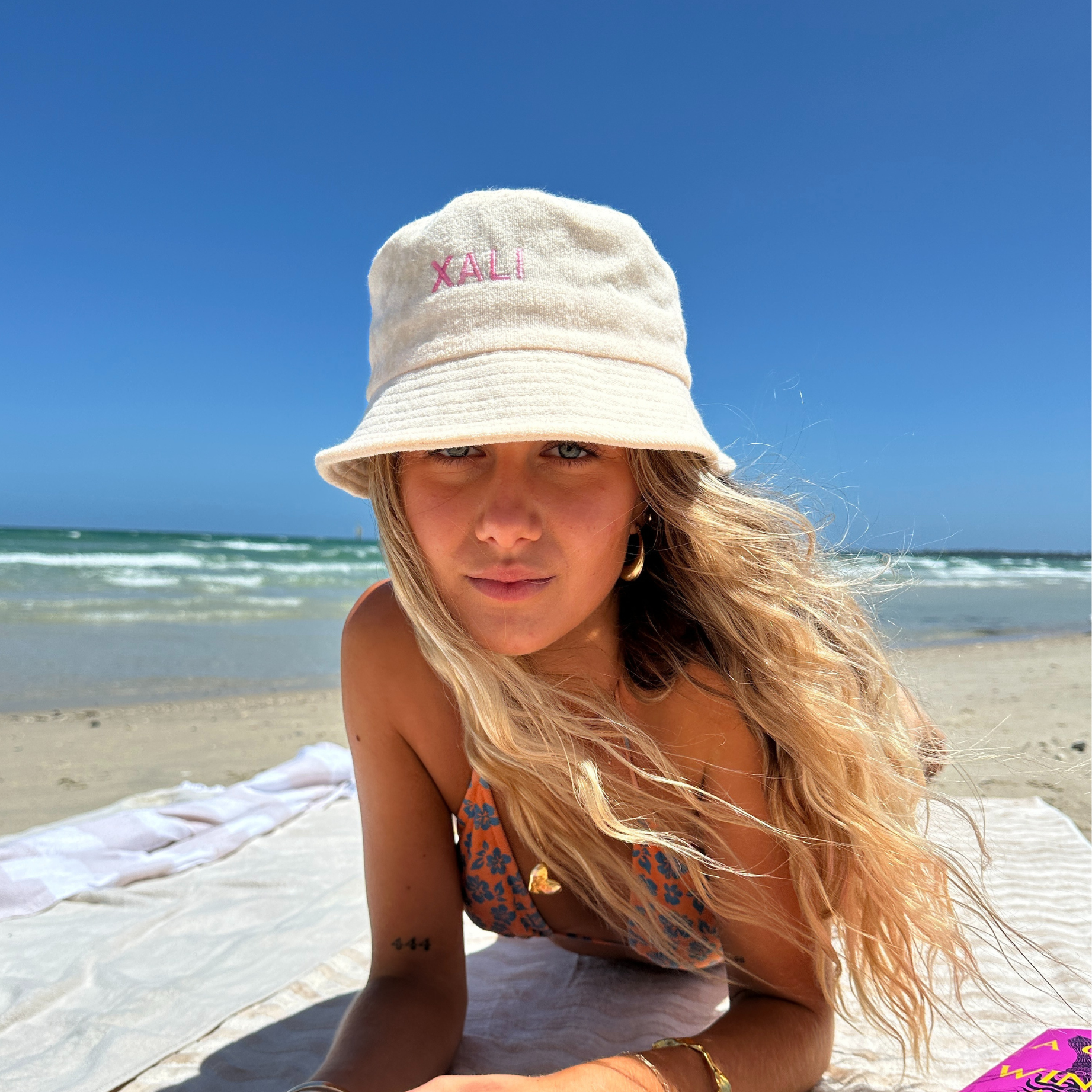 Sun-care is skincare! Meet our limited edition Xali Bucket Hat. Shallow brimmed, terry towelling style...