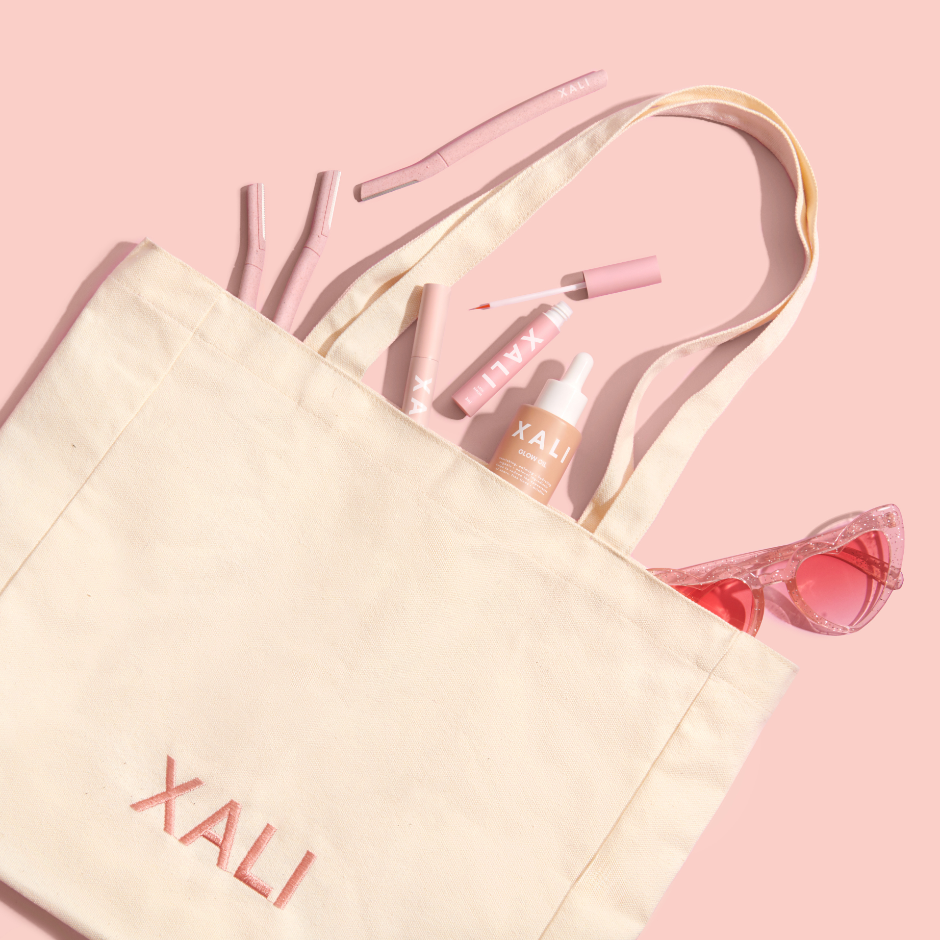 A limited edition Xali Tote bag is the perfect accessory for your summer! Made of a durable cotton and polyester blend with the iconic XALI logo printed front & centre, this tote is both practical and pretty!